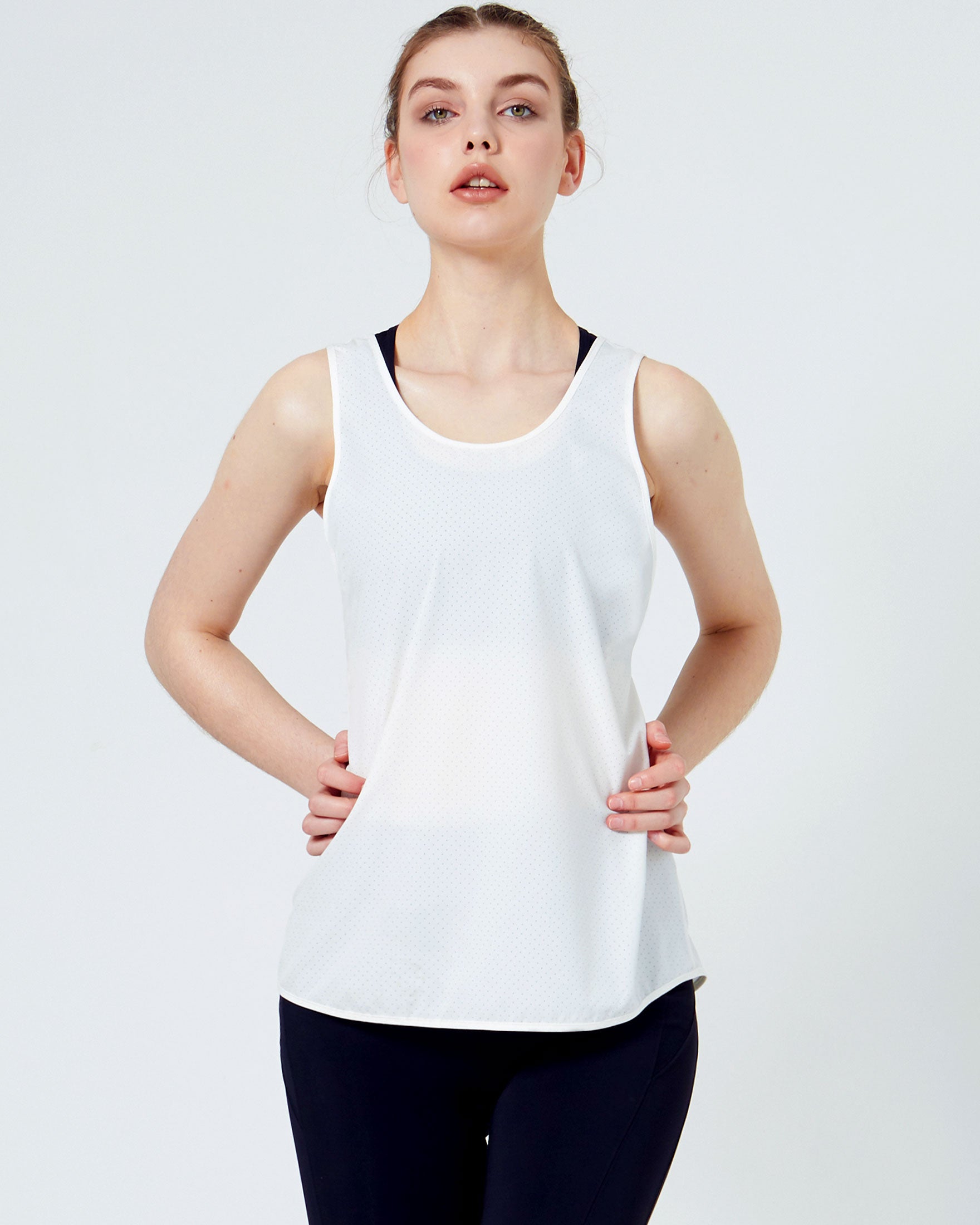 Low scooped racerback tank gives you more room for movement. Perfect to layer to and from practice or for water activities. Made in our stretch woven fabric that absorbs sweat quick and support more movement. All over laser cut mesh hole keeps you breezy throughout your workouts and hot weathers . For run, train, and other sweaty activities.