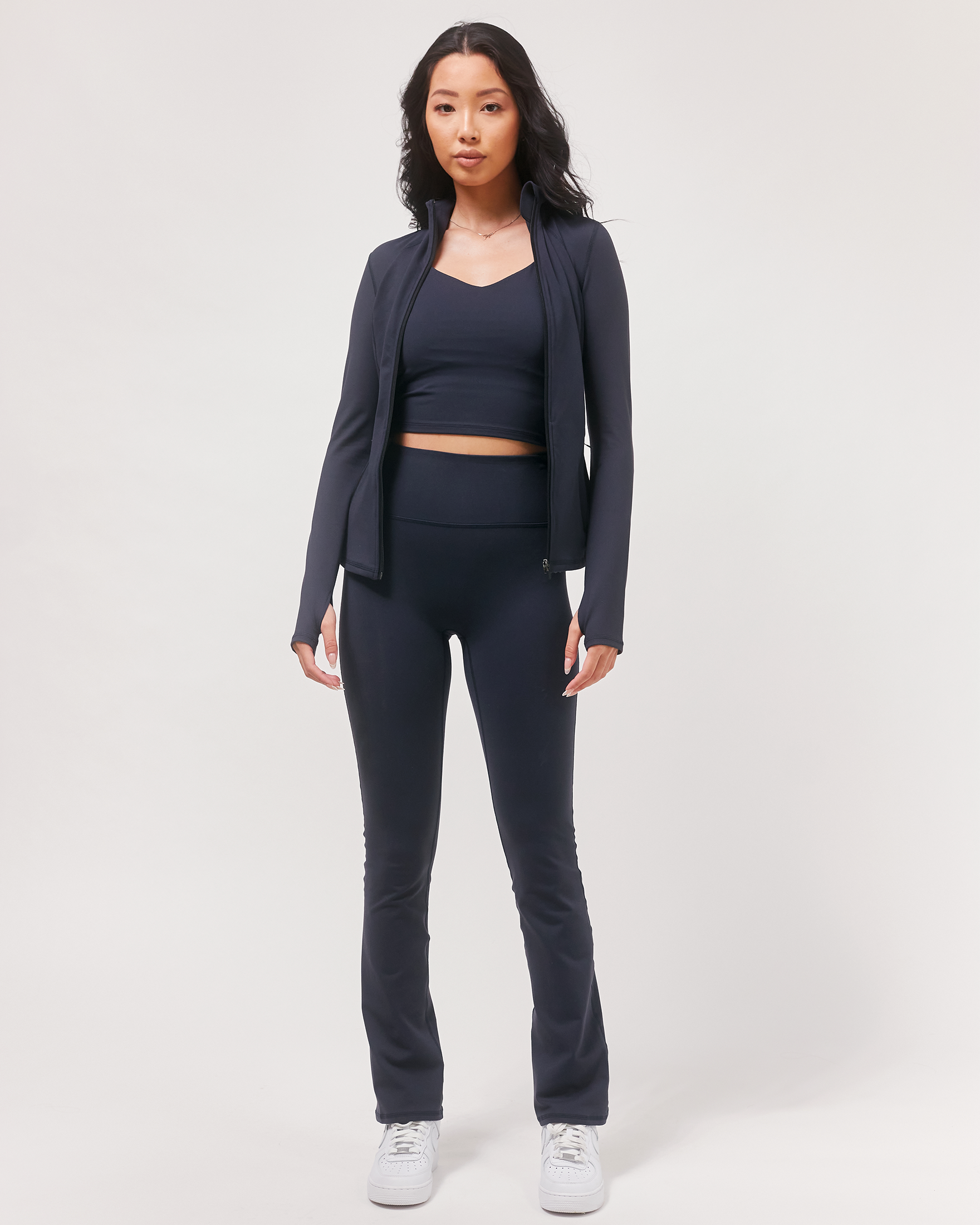 The flattering bootcut leggings your mom and auntie want to borrow from your closet. Slightly cropped with flared opening allows you to style with your favorite low-high top sneakers or with heels. Made in our breathable, 4 way stretch Cloudlux fabric. Features small inner pocket at waistband, high waisted. Petite / Regular inseam 29.5". Designed for yoga and on the go.
