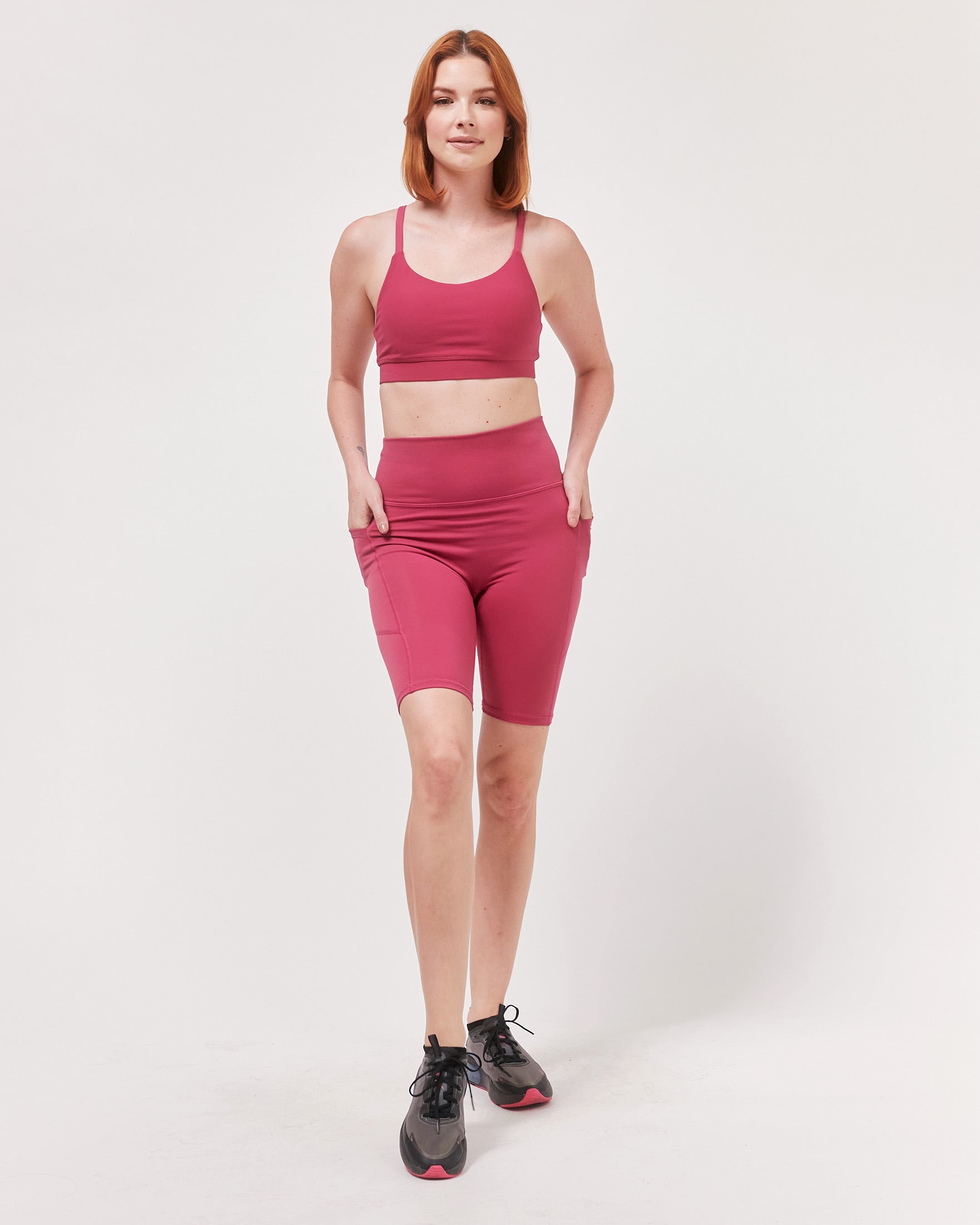 Back to the basics with our Making Moves High Waisted Pocket Bikers Shorts. These will be your tried and true biker shorts perfect for yoga and other light to medium activities. High rise, 8.5" inseam. Made in